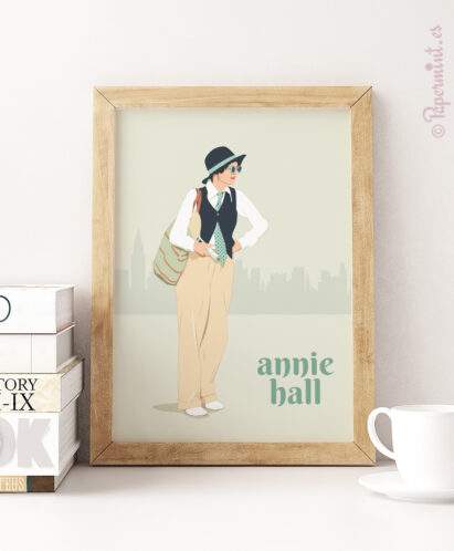 Póster con ilustración personalizada de Diane Keaton en la película «Annie Hall» dirigida por Woody Allen en 1977.