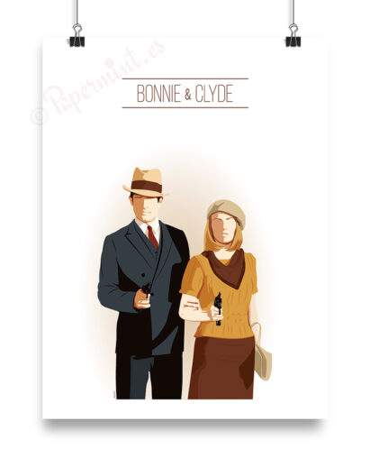 Lámina personalizada de la película «Bonnie & Clyde» de 1967 protagonizada por Faye Dunaway y Warren Beatty.