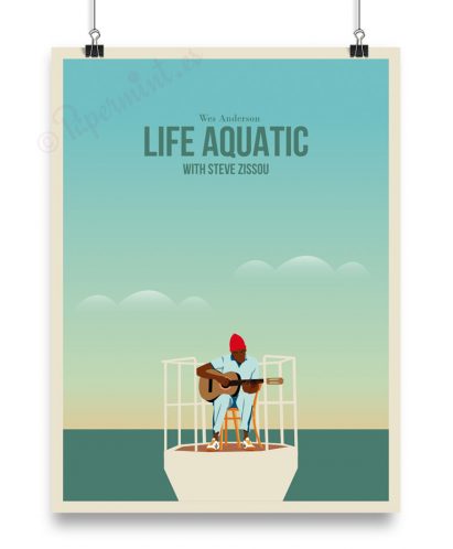 Póster alternativo de la película «Life Aquatic», dirigida en 2004 por Wes Anderson e interpretada por Bill Murray, Owen Wilson, Cate Blanchett, Anjelica Huston y Willem Dafoe entre otros.