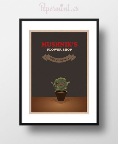 Póster «Mushnik’s Flower Shop» con Audrey II de La pequeña tienda de los horrores (Little Shop of Horrors) de 1986.