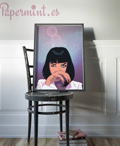 Póster con ilustración propia de Uma Thurman como Mia Wallace en la película Pulp Fiction.