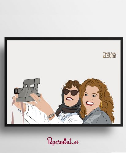 Póster minimalista de la película Thelma y Louise que puedes personalizar con tu propio texto.