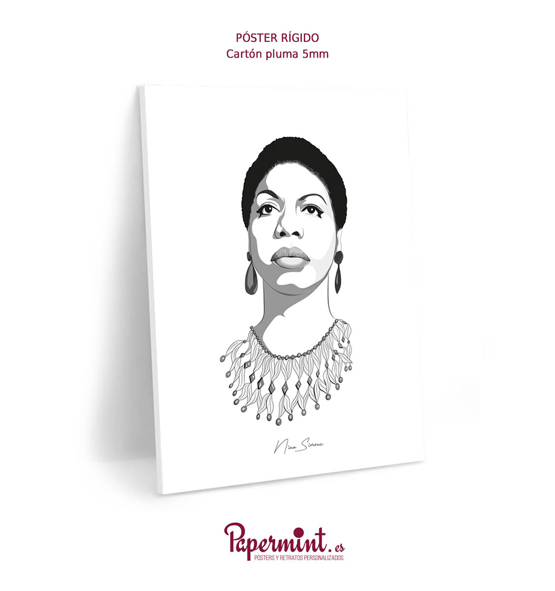 Póster retrato en blanco y negro de Nina Simone.